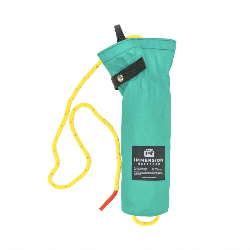 This bag holds 70 feet of 7mm, 12-braid polypropylene rope, an industry standard known for its easy flaking and kink resistance. Each end of rope is whip-end-dipped as a protective seal to prevent fraying and colored to aid in spotting the end of the line. The bottom of the bag has a ½” thick mini-cell foam block to aid in buoyancy for the bag when the rope is fully deployed. The anchoring end of the bag features a quick connect loop that is tied in a bowline knot inside the bottom of the bag. (You are welcome to change this knot to your liking at your own risk).