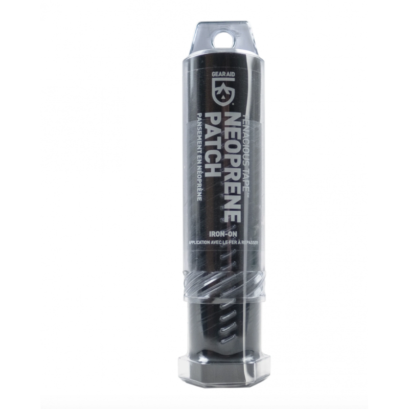 The Tenacious Tape Neoprene Patch is a heat-activated fabric patch that easily repairs rips, holes, and tears on neoprene gear such as waders, wetsuits, boots, and gloves. It features a special lining that provides added abrasion resistance and can be used to reinforce high-wear areas.
